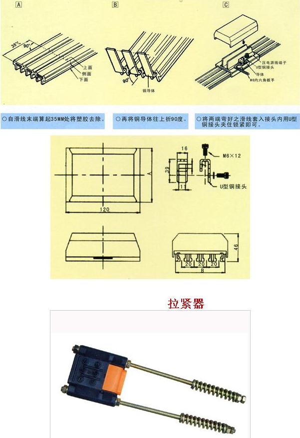 柔性一體式滑觸線是以無氧銅(導(dǎo)電率達99.99%)輸送電源、銅導(dǎo)體之厚度厚(一般標(biāo)準(zhǔn)厚為2.8m/m×10W)、壓降小、導(dǎo)電率倍佳;可根據(jù)用戶的車間長度或用戶的需求來配一條以之相同長度的安全電軌,使整個車間安全配電中間沒有任何接口,真正解決了國產(chǎn)滑觸線因接口多經(jīng)??ㄗ〖娝⒍斐啥搪坊虿荒苓\行的問題。并且適用于曲線、弧形及高低行走的設(shè)計,并且安裝簡便。從而使整套天車工程美觀、整潔又安全。產(chǎn)品有3P、 4P、 6P等規(guī)格,在自動化生產(chǎn)的行列中,絕對是供電系統(tǒng)最佳的選擇。